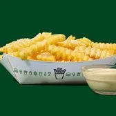 Crispy crinkle cuts dusted with parmesan cheese served with a side of roasted garlic parmesan aioli. (Contains: Milk, Egg)