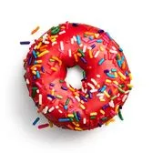 Our original cake batter donut topped with a delightful coating of strawberry icing and rainbow sprinkles.