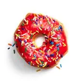 Our much loved Cherry donut decorated with an extra boost of rainbow sprinkles.