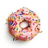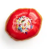 Our original Shipley donut, topped with strawberry icing and decorated playfully with sprinkles.