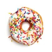 A delicious Shipley donut with sweet vanilla icing and sprinkles on top.
