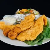 Lightly breaded and fried fish filets, comes with two sides, Texas toast and a beverage