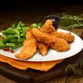 Cut chicken strips breaded and fried, comes with dipping sauce, two sides, Texas toast and a beverage