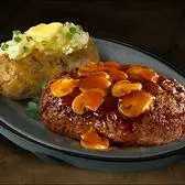 8oz, Ground sirloin cooked to order topped with mushroom gravy comes with 2 sides