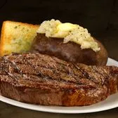 A New York Strip has a strip of fat on one side grilled to order comes with two sides and Tx toast