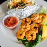 Seasoned Shrimp Grilled comes with cocktail sauce, two sides and Tx toast
