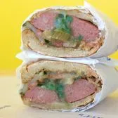 All-Beef frank, Mustard, Green Relish, Tomato, Pickles, Hot Giardiniera Peppers and Celery Salt