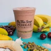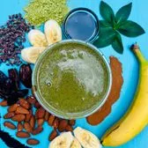 The Soup Peddler's new Matcha smoothie! Bananas, matcha, date syrup, cacao, cinnamon, hemp milk, spirulina, mint, almond butter