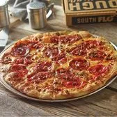 Pepperoni, bacon, hamburger crumbles, Italian sausage crumbles, over a blend of mozzarella and provolone cheese.
