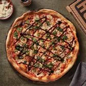 Alfredo sauce base, diced chicken, bacon pieces, jalapenos over a blend of mozzarella and provolone, topped with a ranch drizzle.