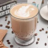 White Chocolate with espresso and milk, available Hot, Iced, or Frozen