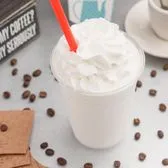 Frozen White Mocha blended with Java Chips and Topped with Whipped Cream and more Java Chips.
