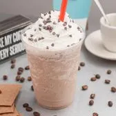 Frozen Mocha Latte blended with Java Chips and topped with whipped cream and Java Chips.