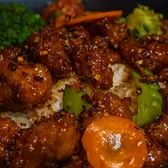 Sauteed shrimp tossed with red bell pepper, zucchini, ginger, garlic, spicy chili pepper, and peanuts