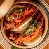 (Chicken) Steamed buns with cucumber, carrot and green onion.