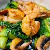 Choice of protein with Chinese broccoli, baby bok choy and mushroom, stir-fried with mixed soy sauce and garlic.