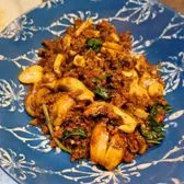 Stir-fried choice of protein with shrimp paste in soyabean, thai pepper, brown sugar, fish sauce, green onion, white onion and cashew nut.