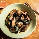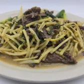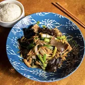 Stir-fried choice of protein with shredded ginger, green onion, white onion, shredded black mushroom, cilantro and straw mushroom.