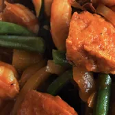 Stir-fried choice of protein in Sap's Special sauce with serrano pepper and white onion.
