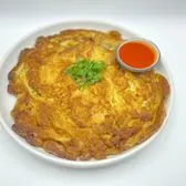 Thai omelet (5 eggs) with ground pork or ground chicken with chopped green onion. Topped with cilantro.