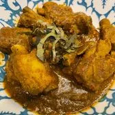 Thai southern style curry with turmeric (cooked without coconut milk) shredded kaffir lime leaves, thai basil and Jalapeño.