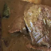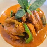 1/2 lb sliced pork belly slowly cooked in Thai red curry with shredded kaffir lime leaves, Thai basil and Jalapeño.
