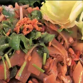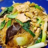 Stir-fried Bean Thread noodle with your choice of protein and baby bok choy, white onion, black fungus mushroom, green onion and Chinese broccoli and egg in mixed soy sauces.