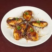 green mussels topped with spicy mayo, eel sauce and green onions (5 pieces).