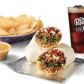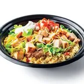 Your choice of meat, refried beans, rice, shredded lettuce, tomato, shredded cheese, sour cream, and pico de gallo.