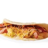 Smoky carnitas, scrambled eggs, green enchilada sauce, and bacon. Topped with shredded cheese on a flour tortilla.