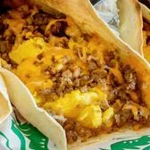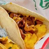 (3) bacon, egg, cheese and (3) potato, egg, cheese breakfast tacos. On the bacon, egg, cheese tacos, you can sub chorizo or sausage for bacon.