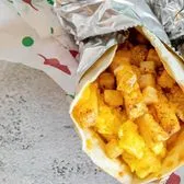 Your choice of fajita chicken or beef, scrambled eggs, and cheese.