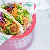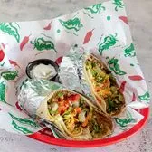 Three crispy or soft tacos filled with our seasoned ground sirloin only (sorry no substitutions). Topped with lettuce, tomatoes, and cheese.