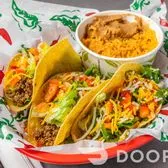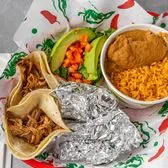 Choose any 2 breakfast tacos. Served with potatoes, beans, and a drink.