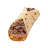 Warm freshly made flour tortilla stuffed with premium sirloin, creamy refried beans, and Mexican red rice.