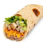 Freshly made burrito-sized flour tortilla, filled with our juicy chicken breast fajita, cheddar cheese, refried beans, Mexican red rice, lettuce, avocado sauce, and a strip of Anaheim pepper.