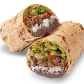 Burrito wrapped in a freshly made flour tortilla, filled with Impossible™ meat, black beans, white rice, guacamole, lettuce, tomatillo salsa, and pico de gallo.