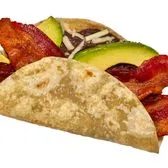 Bacon, Vital Farms scrambled eggs, jack cheese