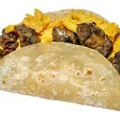 Texas-sourced braised beef, Vital Farms scrambled eggs, salsa de arbol, green onion