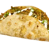 Shredded chicken, tinga sauce, Mexican cabbage slaw, crema. Served in a jack cheese-crisped tortilla