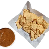 Our housemade Salsa Roja with tortilla chips! Serranos, roasted tomatoes, a hint of heat. Heat Level: Medium