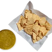 Our housemade Salsa Verde with tortilla chips! Tomatillos, serranos, a hint of sweetness. Heat Level: Mild