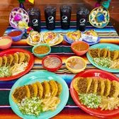 - 6 Orders (4 Corn or Flour) Tacos - 6 Half Baked Potatoes - 6 Charro Beans - 6 Fountain Drinks