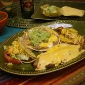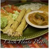 A chalupa, chicken flauta and cheese chile relleno smothered in chile con queso