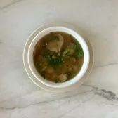 Rice Soup: Garlic is fried in oil with protein to give the fried garlic flavor. It is always made with chicken stock the protien is tofu, no protien or tempeh then we use a soy sauce/water combo. The soup is seasoned with soy sauce and the rice is added at the end so it expands slightly for a different texture. It is garnished with cilantro and ground pepper. Noodle Soup: Same process as rice soup but instead of rice we add wide noodle and bean sprouts.