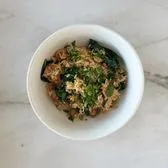 Stir fried mixed seasonal veggies in garlic and soy sauce with your choice of protein and choice of rice