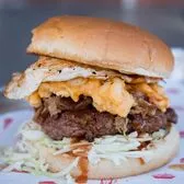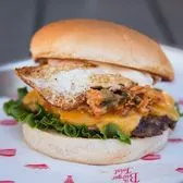 Korean BBQ style Angus beef, lettuce, onions, kimchi, fried egg, cheddar, garlic mayo