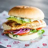 Grilled chicken breast, lettuce, tomato, onions, pickles, mayo.