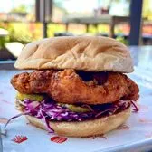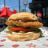 Fried chicken breast, lettuce, tomato, onion, pickles, mayo.