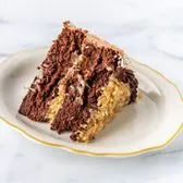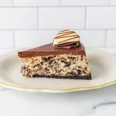 A soft brownie crust surrounds our rich, mocha flavored mousse. To make it even more chocolaty, we pour dark chocolate ganache over the top